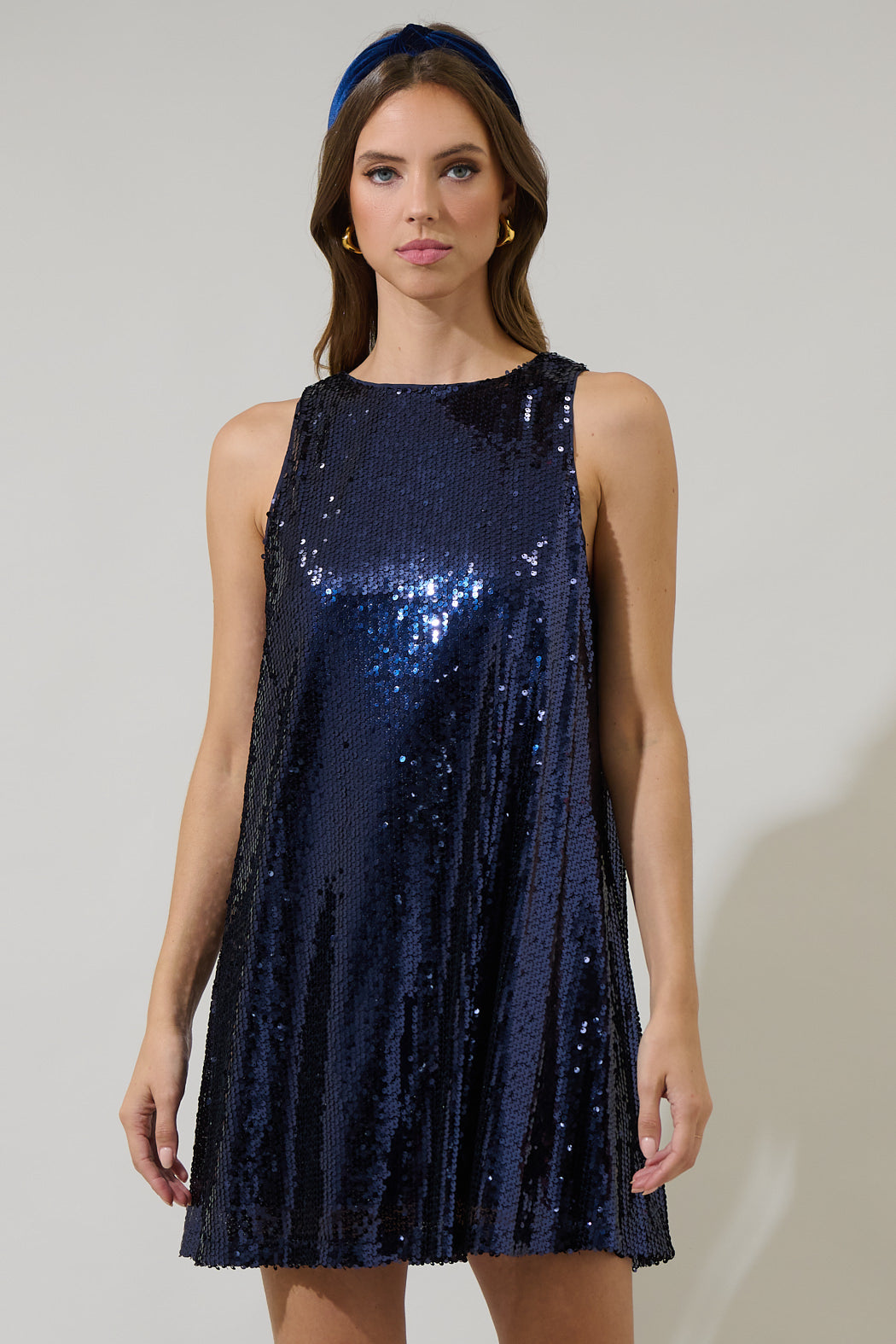 Enjoy a night out with your girls and the Liviana Sequin Sleeveless Mini Dress. It features a round neck followed by a sleeveless look and keyhole. Pair the look with your high heels and accessories for a next-level style.